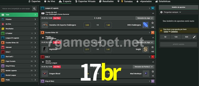 A aposta 17br oferece aos jogadores a experiência mais conveniente de apostas em eSports!